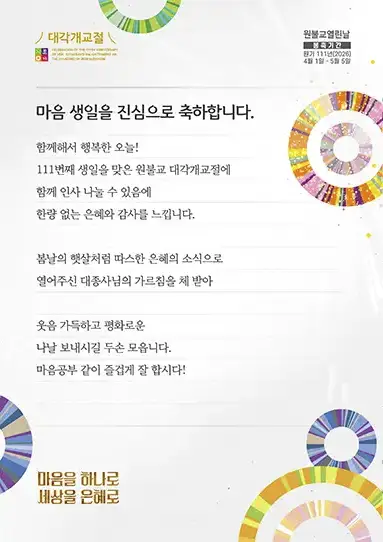 - 해당 콘텐츠는 저작권법에 의하여 보호받는 저작물로 원불교에 저작권이 있습니다.