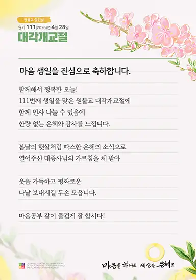 - 해당 콘텐츠는 저작권법에 의하여 보호받는 저작물로 원불교에 저작권이 있습니다.